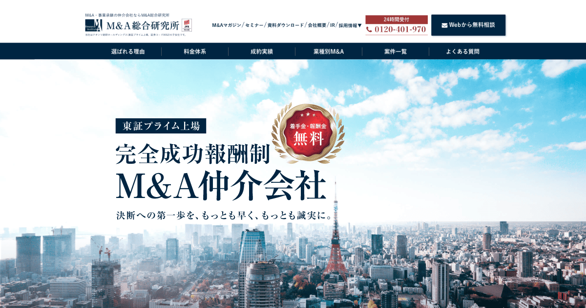 料金に関しては、着手金なし、基本合意まで無料となっています。また、仲介手数料は顧客にとって低額となる「株価レーマン方式」を採用しており、仲介手数料率は2.5%と業界でも最低水準となっています。